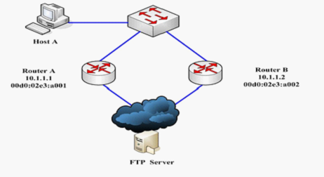在上图中,主机A—D都配置了一个默认的网关:10.1.1.1,网关路由的下一跳指向主机所在网段内的一个路由器RouterA,RouterA将报文发送到外网,但是如果现在RouterA坏掉了,那么所有的主机将无法与其他网段进行通信了。