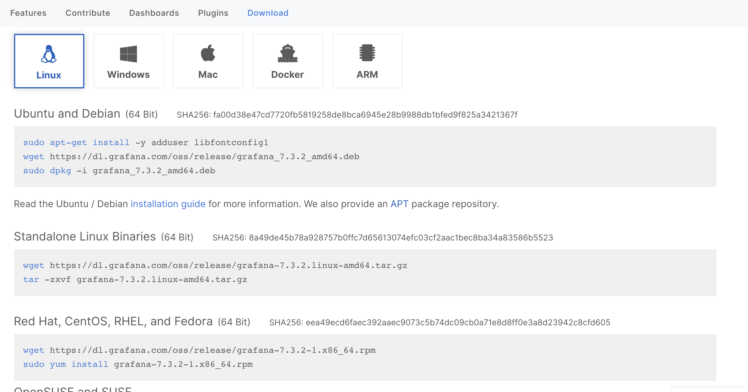 wget https://dl.grafana.com/oss/release/grafana-7.3.2-1.x86_64.rpm