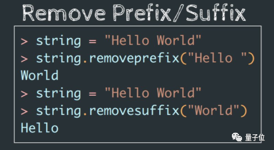在Python的官方文档,以及Prasoon的图表中,也着重展示了新的用于「移除前缀和后缀的字符串」方法。