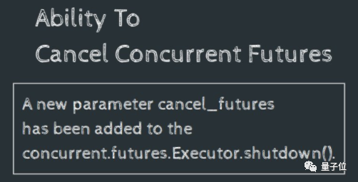Python3.9将新的 cancel_futures 形参,添加到 concurrent.futures.Executor.shutdown(),可以取消尚未开始运行的所有挂起的 Future,而不必等待它们完成运行再关闭执行器。