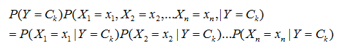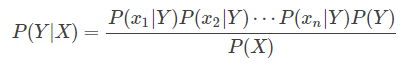 朴素:朴素贝叶斯算法是假设各个特征之间相互独立,也是朴素这词的意思那么贝叶斯公式中的P(X|Y)可写成: