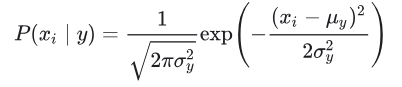 其中Ck为的第K类类别。Y的需要求出μk 和σk2 ,μk 在样本类别Ck中,所有 Xj 的平均值。σk2 为在样本类别 Ck 中,所有 Xj 的方差。