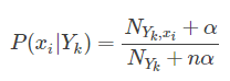 - NYk,Xi:类别为Yk,且特征为X1的样本数