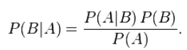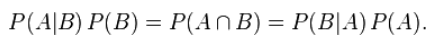 这个引理有时称为概率乘法规则。上式两边同时除以P(A),若P(A)是非零的,我们可以得到贝叶斯定理:
