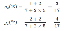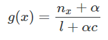 其中nx是单词x出现的次数,l是句子的长度,c是句子中不同词汇的个数,a是拉普拉斯光滑的光滑系数,这个是自行设定的。