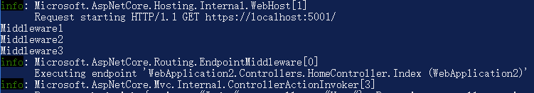 用 Use 将多个请求委托链接在一起。next 参数表示管道中的下一个委托。可通过不调用 next 参数使管道短路。