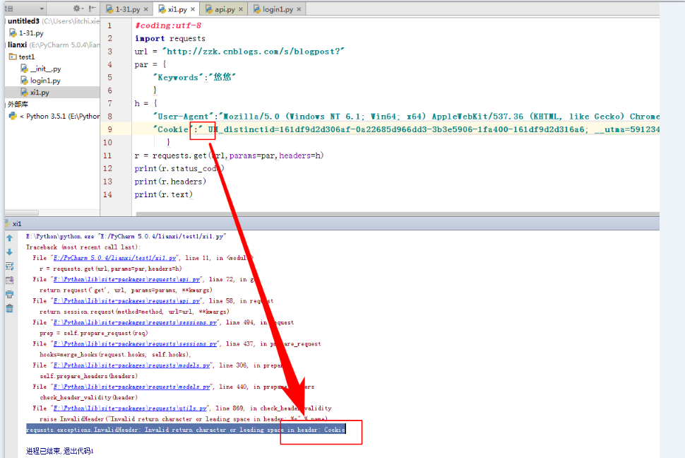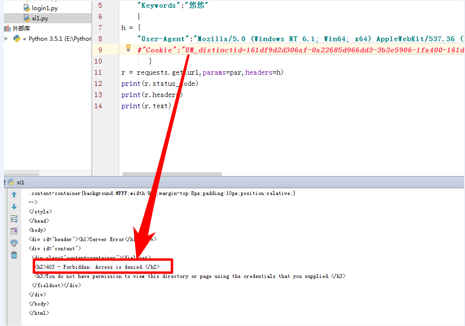 2、运行请求代码时,因请求缺少cookies信息报错403(我这里是验证缺少cookies会怎么样,特意注释掉)如第一张图