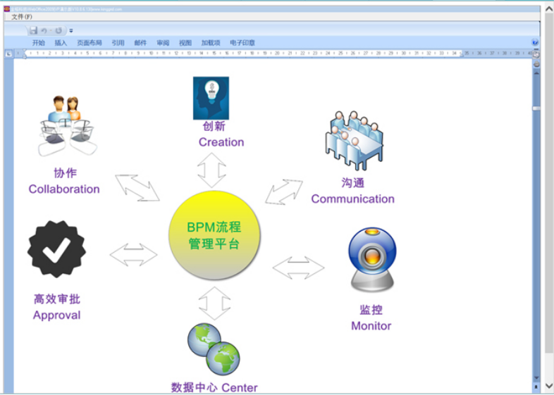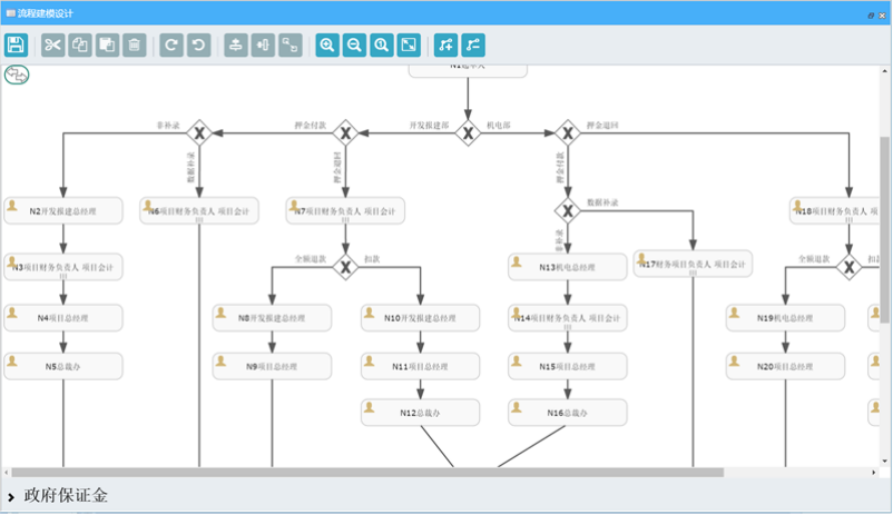 提供组装流程业务的解决方案的管理,把流程定义、审批人员、流程表单、审批时的事件及交互脚本调用等组装起来,实现真正意义上的BPMN的流程业务规则。如审批时,执行写入其他数据库的操作。支持各种事件的脚本交互处理;同时可让平台扮演流程管理中心,支持第三方平台的流程应用调用。