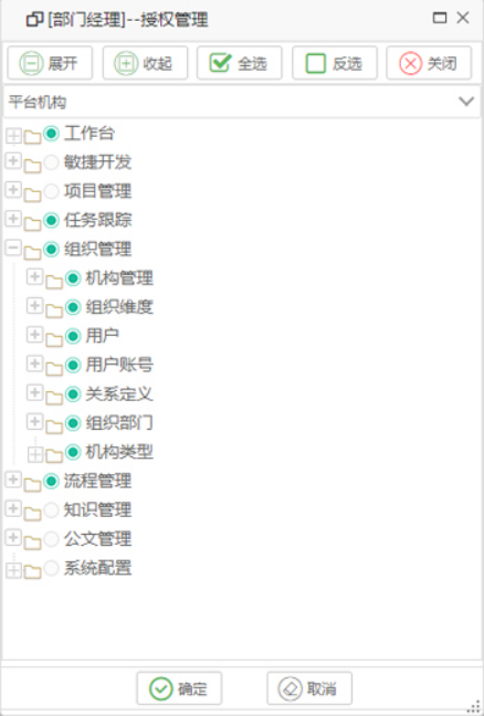 流程在线定义、表单自定义配置、查询设计、列表设计、表单方案设计、流程方案设计、组织架构设计、数据字典、选择对话框设计、数据源设计、流水号设计、流程授权设计等,可以满足各种流程的业务扩展需求。