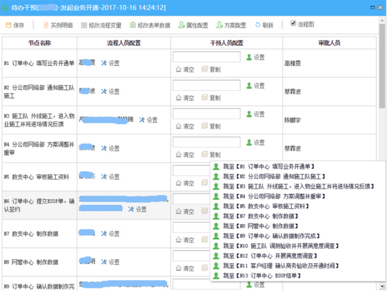 提供用户多种途径对正在运行的流程实例进行干预处理,防止流程人为出错后,系统有效提供手段进行人工纠正。