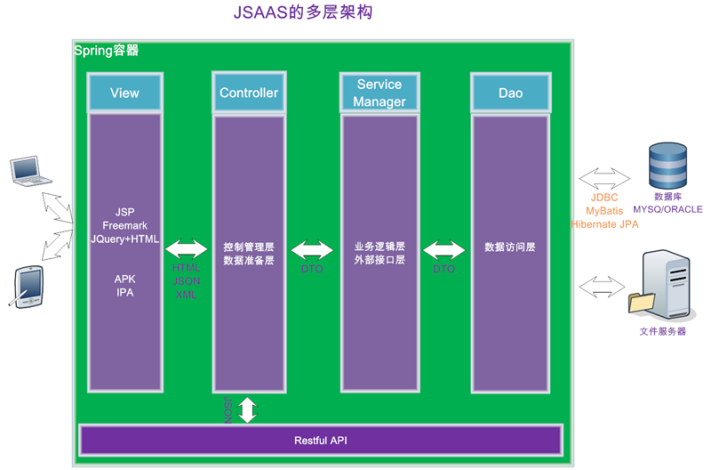 红迅JSAAS敏捷开发平台采用流行Spring轻量级框架,并且结合大量成熟的开源框架,满足企业级的开发与运营的需要。