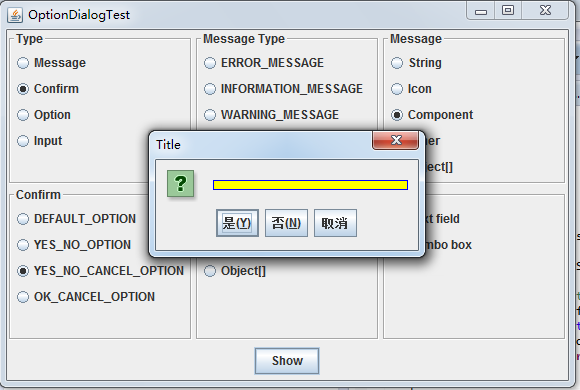 showConfirmDialog: 显示一条消息并等待用户确认(与 OK/Cancel类似)