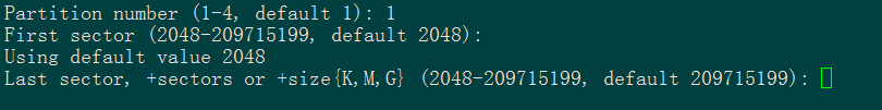 6、设置主分区大小,大小采用 +size{K,M,G}方式 直接输入分区大小,如图: