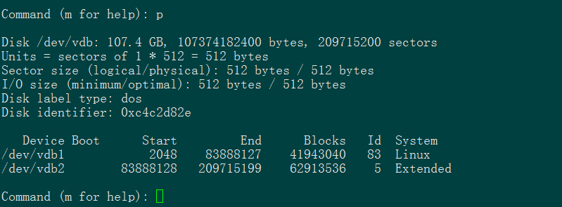 1、输入 fdisk /dev/vdb 然后回车,如图: