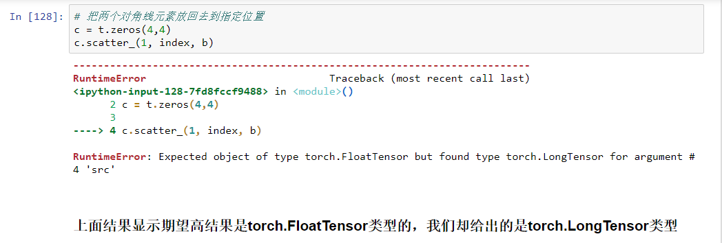 与gather相对应的逆操作是scatter_,gather把数据从input中按index取出,而scatter_是把取出的数据再放回去。注意scatter_函数是inplace操作。