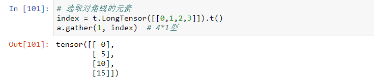 >>> index3 = t.LongTensor([[0,1,2,3]]).t()
