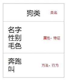 方法(行为/功能):叫 、跑、咬人、吃、摇尾巴