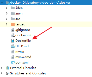 接下来,在项目的根目录下,我创建一个 Dockerfile ,作为我镜像的构建文件,具体位置如下图: