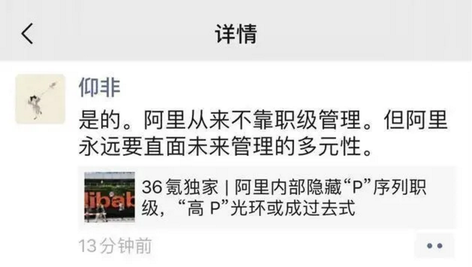 对此,阿里巴巴集团公关委员会主席王帅在朋友圈表示:“是的。阿里从来不靠职级管理。但阿里永远要直面未来管理的多元性。”