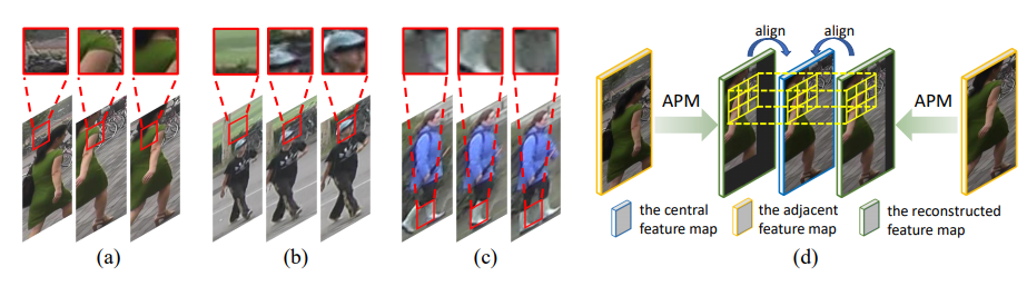 目的:解决基于视频人员重识别中的 temporal appearance misalignment 问题。