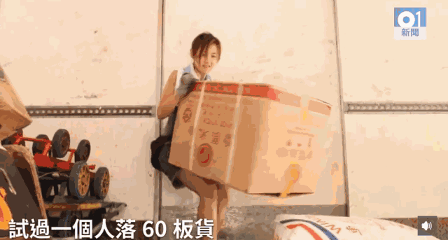 视频和照片中,朱芊佩穿着背心,徒手扛起一袋袋三四十斤的货物,肌肉线条硬朗、颜值颇高不输于TVB女明星。