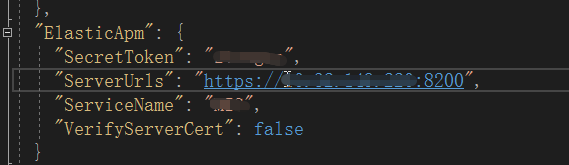 Apm-server配置好之后,接下来就是我们应用中引入和配置agent了。首选,在我们待监控应用系统配置文件appsetting.json中,加入如下一段配置: