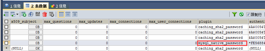 用SQLyog重新连接MySQL,可以成功连接。此时查看mysql数据库中的user表,发现root账号的插件名称发生了变化,如下所示。