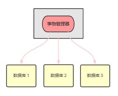 事务管理器负责协调多个数据库的事务,先问问各个数据库准备好了吗?如果准备好了,则在数据库执行操作,如果任一数据库没有准备,则回滚事务。 -