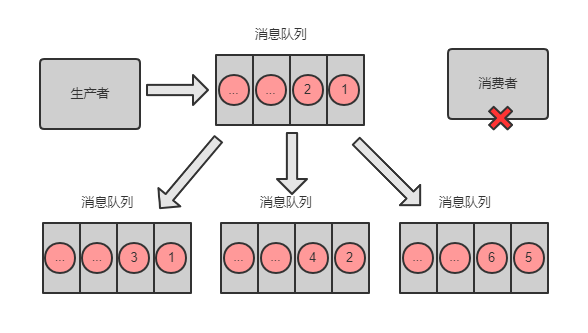 消息队列的消息可以放到内存中,或将内存中的消息转到硬盘(比如数据库)中,一般都是内存和硬盘中都存有消息。如果只是放在内存中,那么当机器重启了,消息就全部丢失了。如果是硬盘中,则可能存在一种极端情况,就是将内存中的数据转换到硬盘的期间中,消息队列出问题了,未能将消息持久化到硬盘。