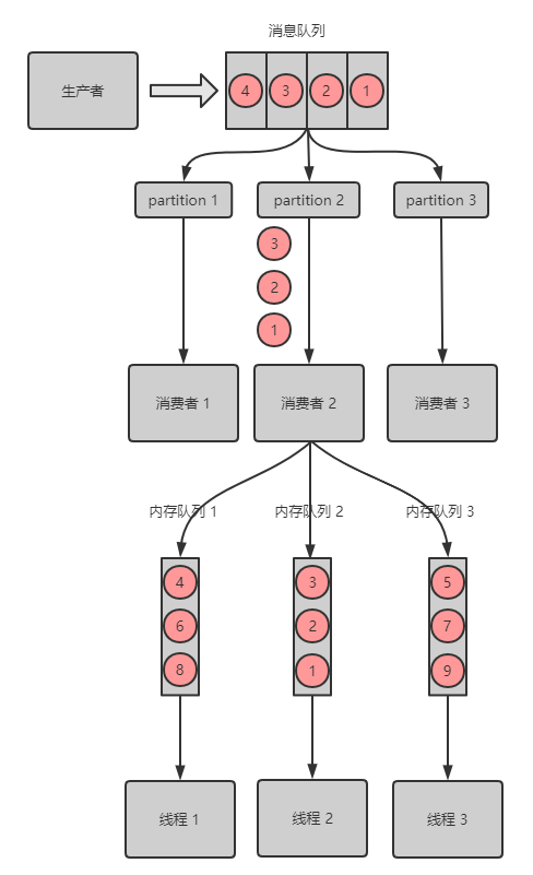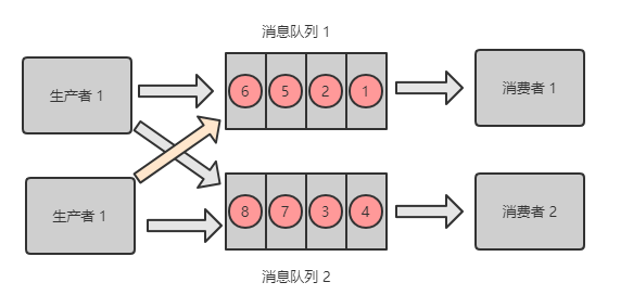 将消息队列里面的消息分摊到多个节点(指某台机器或容器)上,所有节点的消息队列之和就包含了所有消息。
