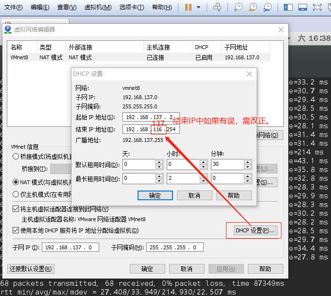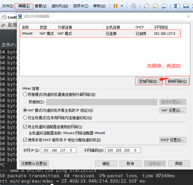 VMWare中,“编辑”->“虚拟网络编辑器”: