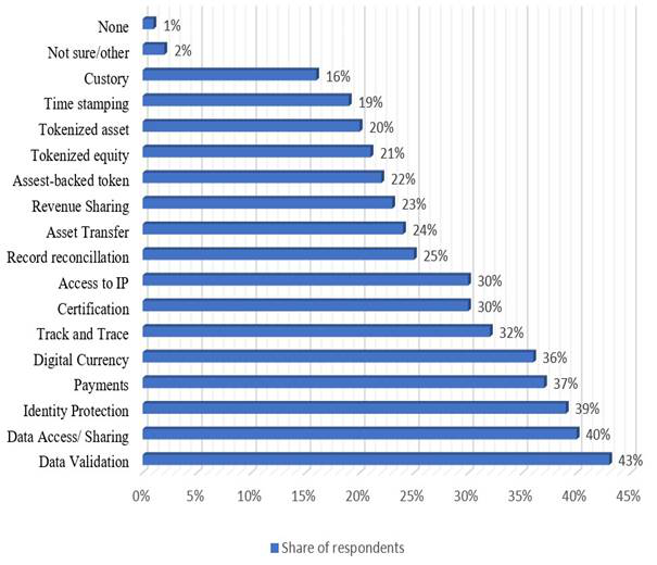 几十年来,教育部门经历了不断的技术进步。目前,人工智能(AI)、虚拟现实(VR)、物联网、区块链和可穿戴设备等创新正在被用于提高教育部门的能力。该研究是5G多样性系统中物联网领域的一个进步,作者提出了一种独特的基于区块链的物联网结构,在5G网络中,不同的人和连接的设备相互作用。这项研究的结果将是在物联网上引入一种新的通信结构。建议的研究利用了所需研究的适当和有效的模拟,并可通过物联网结构引入。似乎整个宇宙都在完全依赖移动设备和无线技术。贯穿物联网的区块链(BC)已经成为一种新颖的创新,它表现在分散、分布式、公共以及实时数据库上,以收集物联网端点之间的操作。图1显示了2019年根据Statista报告在全球服务中使用区块链技术的情况。