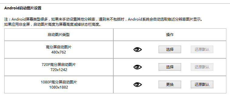 6,启动图片(splash)配置,点击切换到启动图片配置
