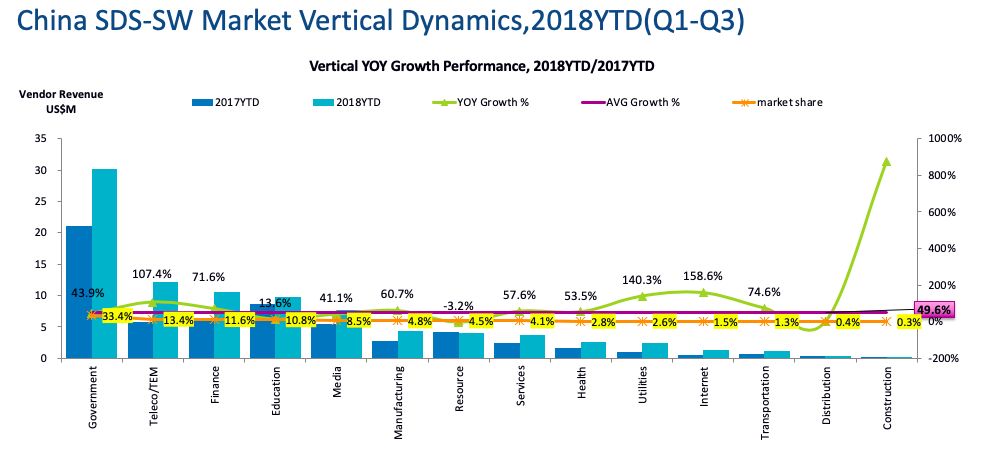 我们看到,政府、电信、金融是SDS软件最大的三个行业,这个和传统存储的TOP3行业是一样的。政府行业的占比超过1/3,做SDS的不得不做这个市场啊,但是这个市场一般都被大的政务云厂商控盘了,单纯做SDS的创业公司在这个市场上量确实面临比较大的问题。