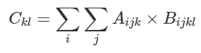 C = np.einsum('ijk , ijkl -> kl',A,B)