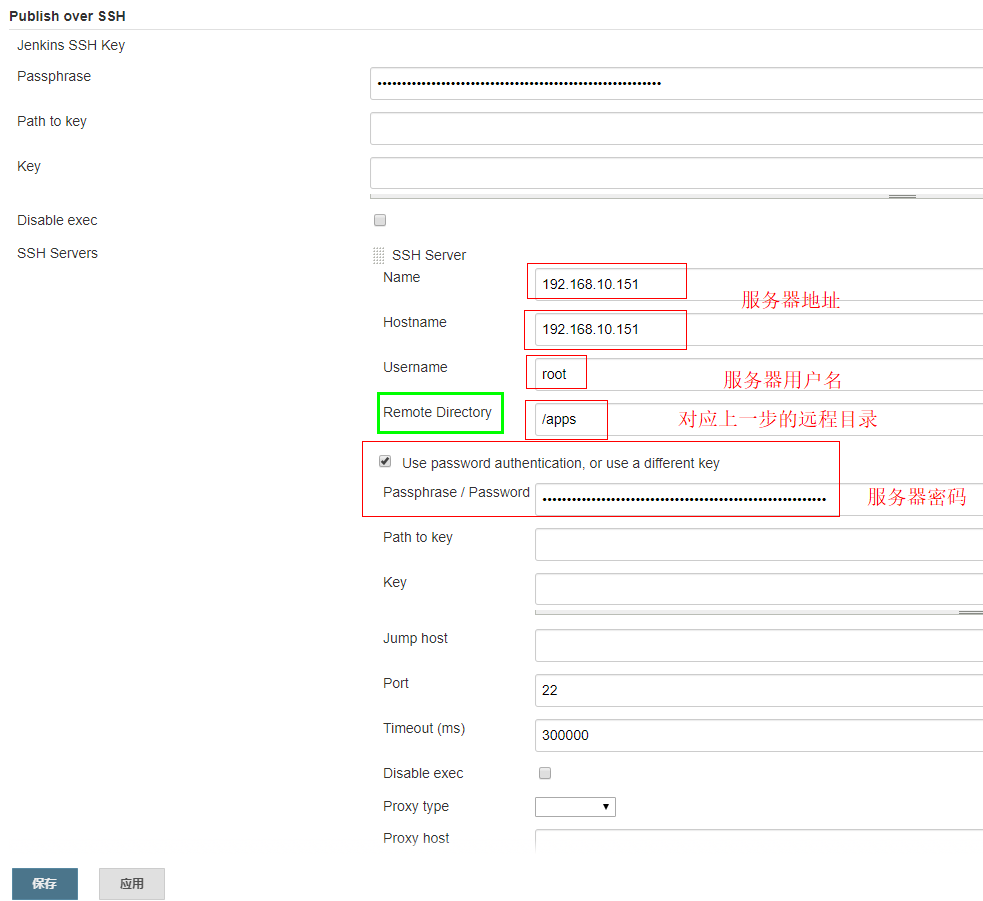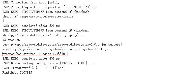 3)上面配置的 Remote directory 为 /zsxc-module-system ,此处真实路径对应Publish over SSH 插件中的配置路径 /apps 加上 /zsxc-module-system 为 /apps/zsxc-module-system(可以根据自身情况修改)