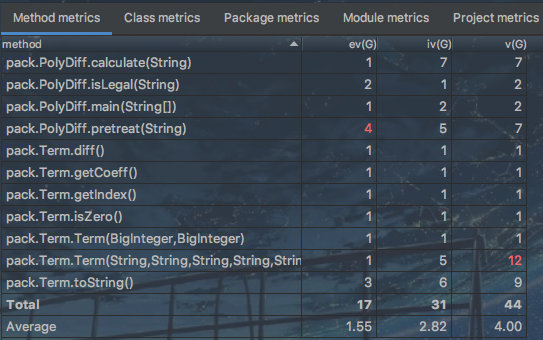 果然越复杂的程序,要做到均衡控制每个方法的复杂度就越难。主要的问题依然出在输入分析、预处理以及合法性判断上,尽管这次我将他们分离了开来。至于有没有必要以及如何进一步拆解,还有待研究。