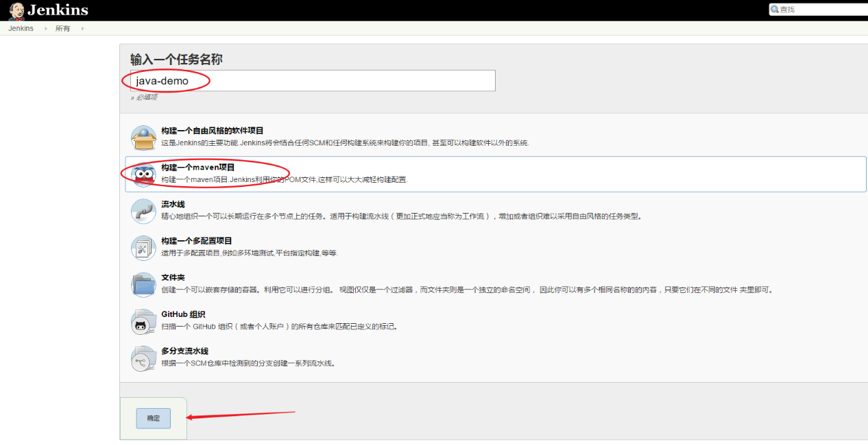 配置项目(新建任务 -> 输入任务名称,构建一个Maven项目)