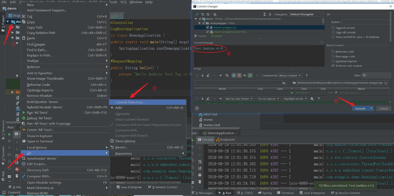 注:我们在项目文件名上右键选择 git,通过 add 添加到本地库的跟踪区,再comment 正式提交到本地仓库。