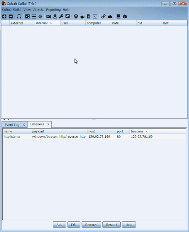 1. Listener:攻击者在C2上运行的服务,可以监听Beacon的请求(check in)。