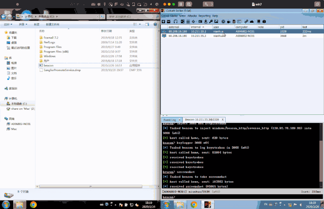 Cobalt Strike 还支持屏幕截图功能,具体操作见下图