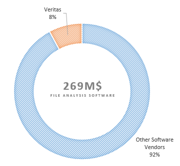 最后来看看文件分析市场,这块2017年空间只有2.7亿美金,不太大。而且,这块也没有大厂商,只有Veritas占据8%的市场,其他都是小厂商。