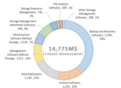 最大的一块是备份和恢复软件市场,2017年的市场空间是57亿美金。