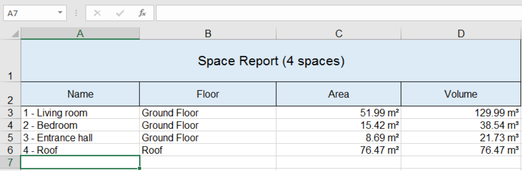 .SetCellValue($"Space Report ({spaces.Count} spaces)");