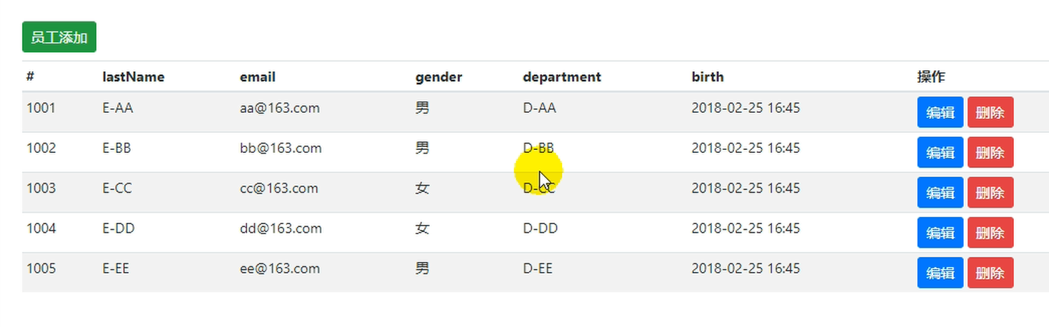 <h2><a class="btn btn-sm btn-success" href="emp" th:href="@{/emp}">员工添加</a></h2> <!-- get请求-->
