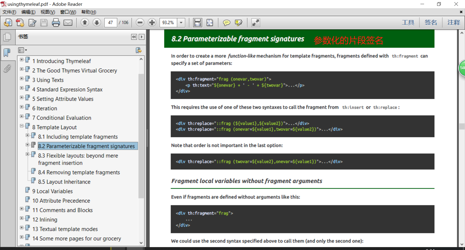<div th:insert="~{footer :: copy}"></div> 模板是:footer.html
