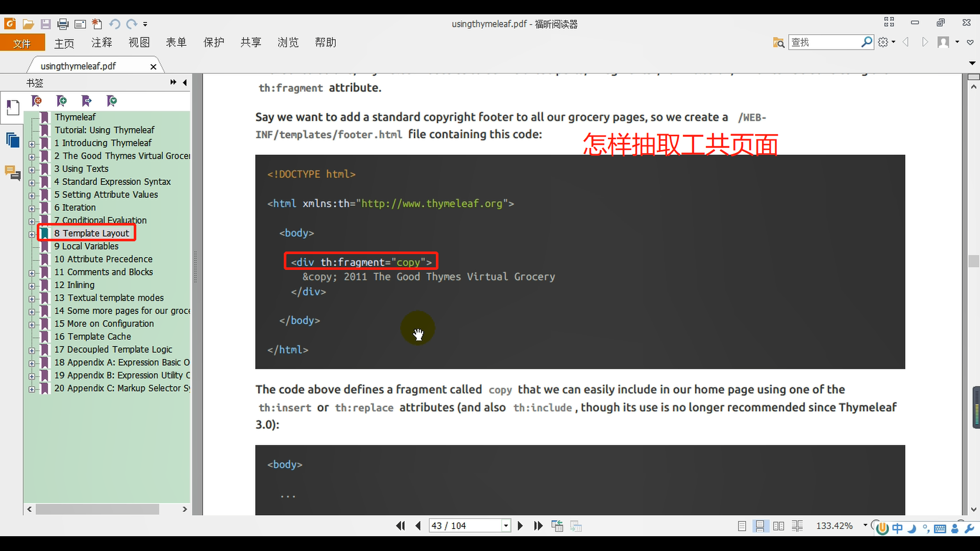 1、抽取公共片段,在公共页面footer.html的片段上加上th:fragment属性