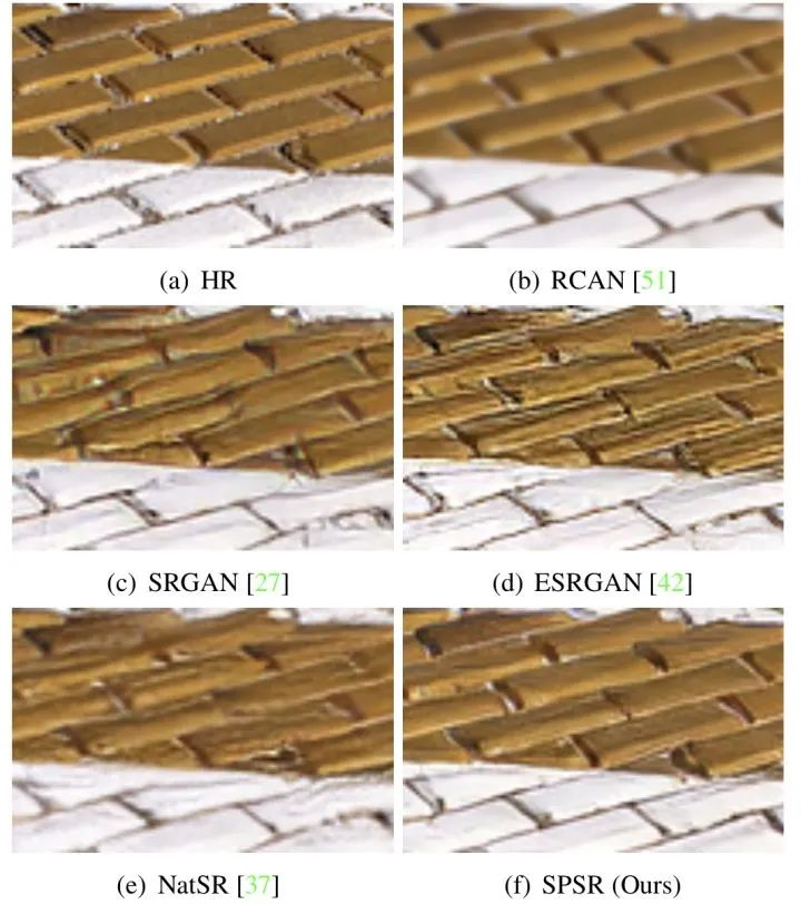 从图 1 可以看到, SPSR 不仅能够生成比 RCAN 更清晰的结果,同时保留更加精细的几何结构。