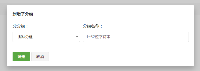 点击之后选择 添加子分组 按钮,在弹出框中输入相关信息即可创建一个接口分组: