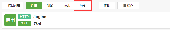进入接口详情页,点击上方 历史 选项卡,跳转到 版本管理页面: